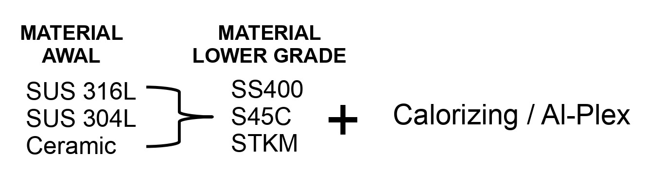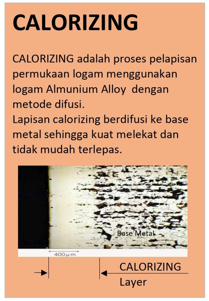 ( Dengan proses Calorizing / Al-plex maka dapat menggunakan material dengan grade yang lebih rendah, sehingga biaya pembelian material bisa turun menjadi lebih murah )