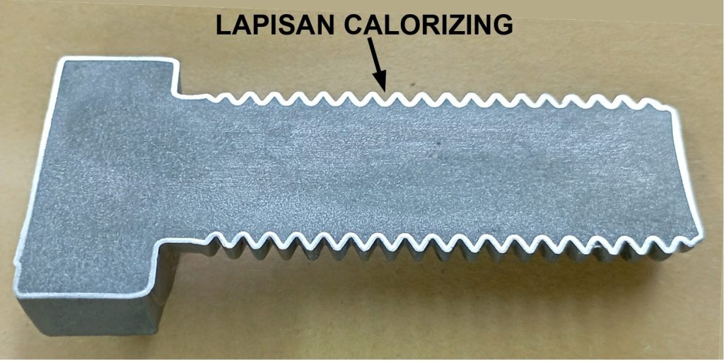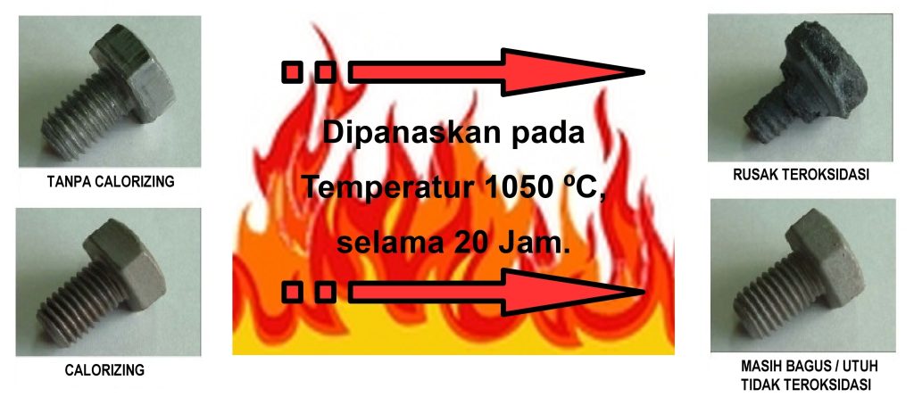 Sehingga lapisan calorizing dapat meningkatkan umur pakai dan menurunkan cost maintenance / penggantian Part-part yang terbuat dari baja dan digunakan pada temperatur tinggi.
