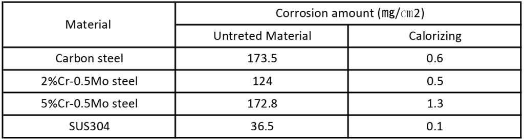 Tes Ketahanan Calorizing terhadap Hydrogen Sulfida (H2S), Temperature 650°C x 24 Jam.