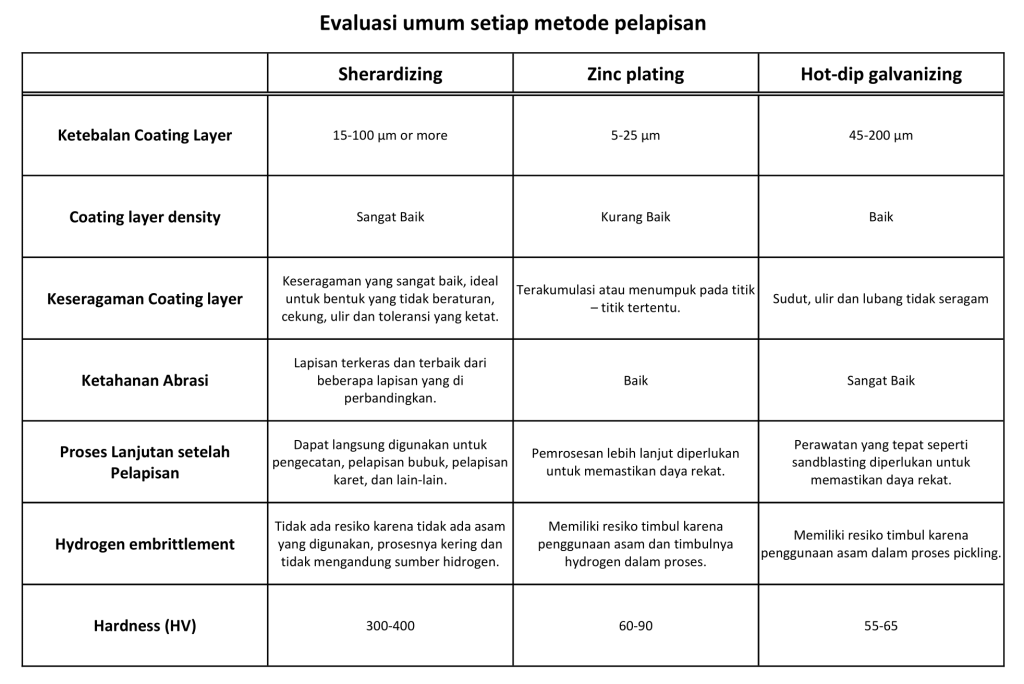 Perbandingan Sherardizing dengan Galvanisasi Celup Panas: